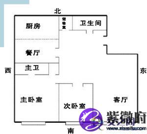 此户型图为东北缺角,东北角凹进去了3分1的位置,那么东北角代表着家中的男子,和在商业中的地位,也可称为靠山,如果没有了东北角,那么就相当于没有了靠山、财山和地位,或者是家中的男子不成器。
