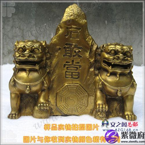 铜泰山石敢当+双狮子摆件(房屋缺角必备)★