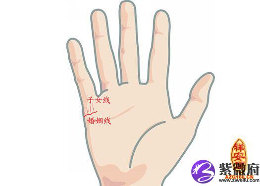 在婚姻线上出现一条条小指纹,并非由婚姻线分叉出来的,是具有一种独立的纹路,称为子女线,此线则是关系到儿女多寡和好坏。