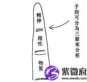 手指可细分为第一节、第二节和第三节等三个部份。先来说第一节吧,这部份代表了一个人的精神领域,有些人第一节生得特别长,比起其他两节都突出,这种人便会在精神生活上,所追求的比一般人来得较多了。