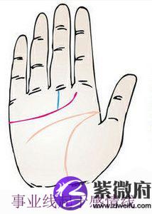 事业线,又称玉柱纹、命运线。优良的事业线,应深细,少杂纹,最好不要超过情感线。如此才能使用成功,妻贤子荣,无事业线者,并不等于没有事业。
