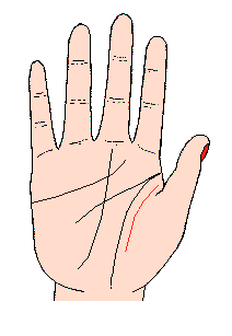 火星线是生命线内侧的线,较长的火星线,甚至由生命线起点伸出一直走到手腕子附近;火星线可以说成(活力线),当精力充满时,表示斗争力之气势;这条线如果明显,纵然生命线较短或成为链子状,也足够补救其缺点,为衰弱的身体添上活力,为萎颓的精神增强气力,所以又称(第二生命线);无论男人或女人,这条线明显的人,对工作有热忱,更有耐心与勇气克服困难,而渡过快乐人生。不过此线亦有另一名称叫(痴情线),主对事物有一往情深的倾各,或长期痴恋某人,例怀念旧爱人(特别初恋情人)或崇拜、单恋心中偶像,使心境经常挂念着,特别容易恋上已婚之异性。少女则有恋父倾向。