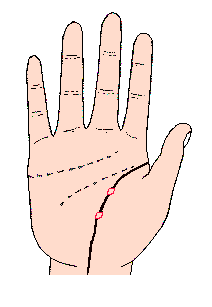生命线短,在中途忽然变细小而消失的,即表示生命力弱,但若以线之长度来决定是否短命是危险的;如左右手的生命线均短,且几乎在同一位置终止的相,即表示在终点的年龄,有生命危险(或仅活到那个年龄),但如果只有一手的生命线较短,则无此顾虑;即使生命线再短,但大拇指不错或智慧线优秀或辅助线的火星线有劲的话,那就可补救生命线的缺点,短的生命线也有微微伸长的可能性;总之:生命线长的人,如喜欢纵慾或暴饮暴食,亦无法长寿,相反的,即使生命线短的人,如果能多多保重身体,亦能多活几岁。