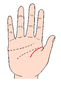 生命线之弧形少,金星丘的面积小;精力不旺盛或性荷尔蒙分泌少,所以吸引异性的魅力较弱;生命线或智慧线幼弱,再加上金星丘贫乏,则表示生活力弱,且有虐待狂,因此要开拓命运很难。